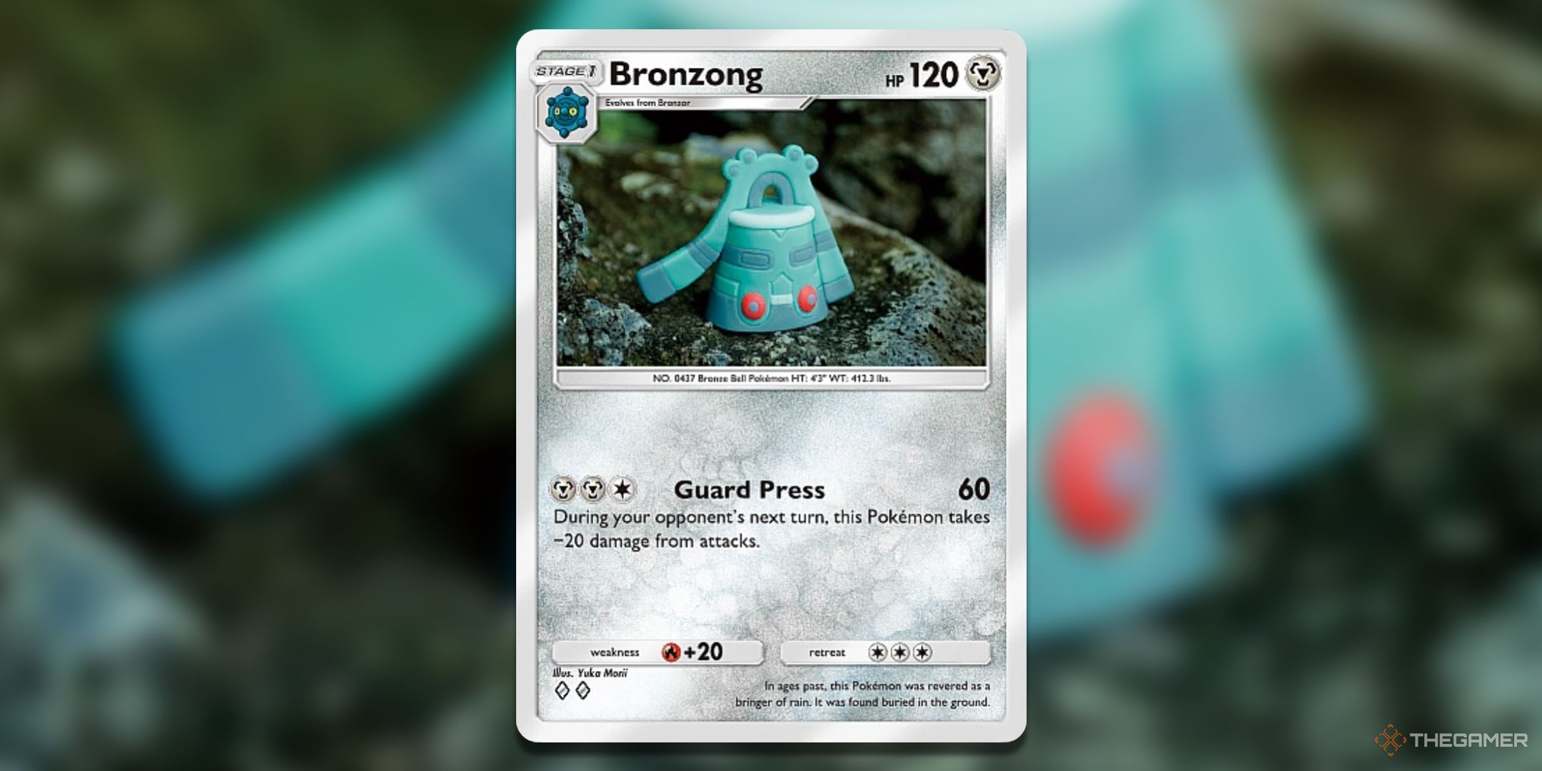 スチールタイプのポケモンが一般的に共有する特性は、相手の攻撃に対する保護です。ブロンゾンは、ムーブ、ガードプレスのブロンツールのステージ1の進化です。これにより、3つのエネルギーに60のダメージを与えることができますが、ブロンゾンを損傷から保護します。