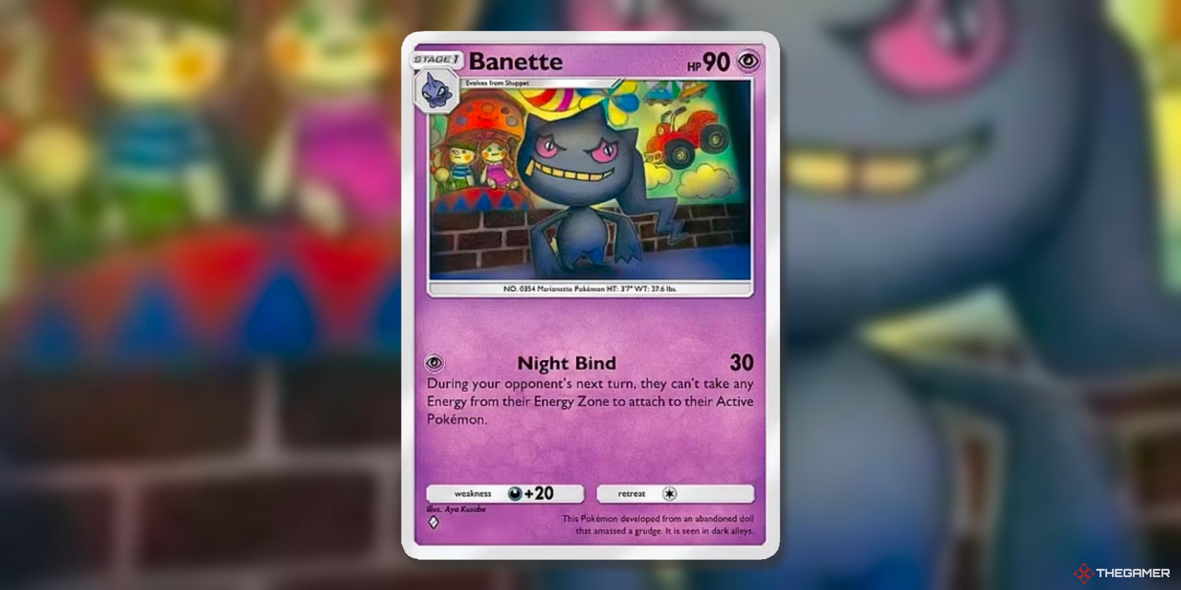 バネットは、相手の最悪の悪夢に変わることができる卑劣な小さなポケモンです。 30のダメージはそれほど多くはありませんが、Night Bindは使用するのに1つのエネルギーのみで、対戦相手がアクティブなポケモンでエネルギーゾーンを使用するのを止めます。