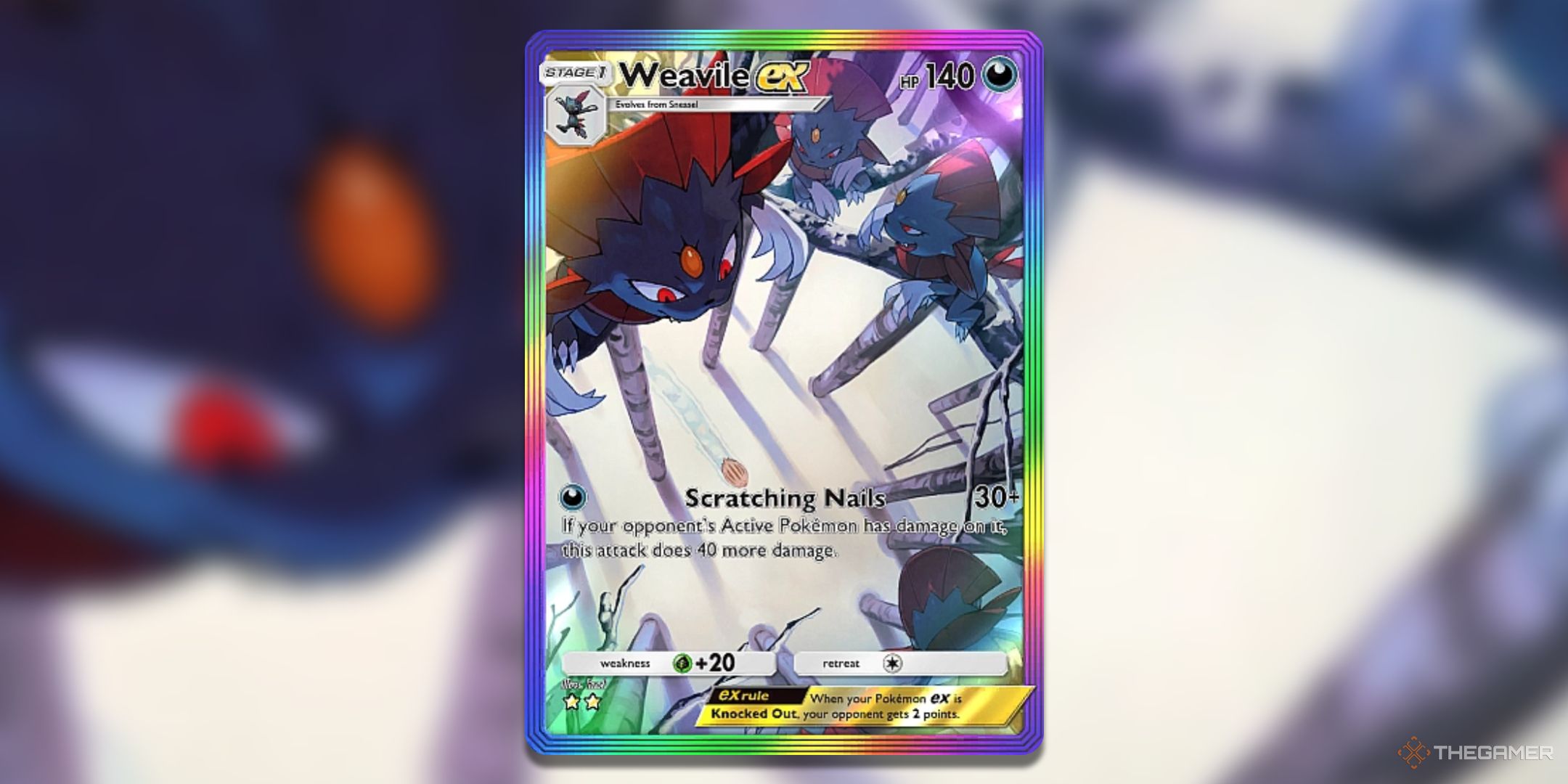 見栄えが良いだけでなく、セットが提供する最も強力なデッキの1つに関連する珍しいイラストに勝るものはありません。 Weavile Exは、相手の弱体化したポケモンの後に来る準備ができています。