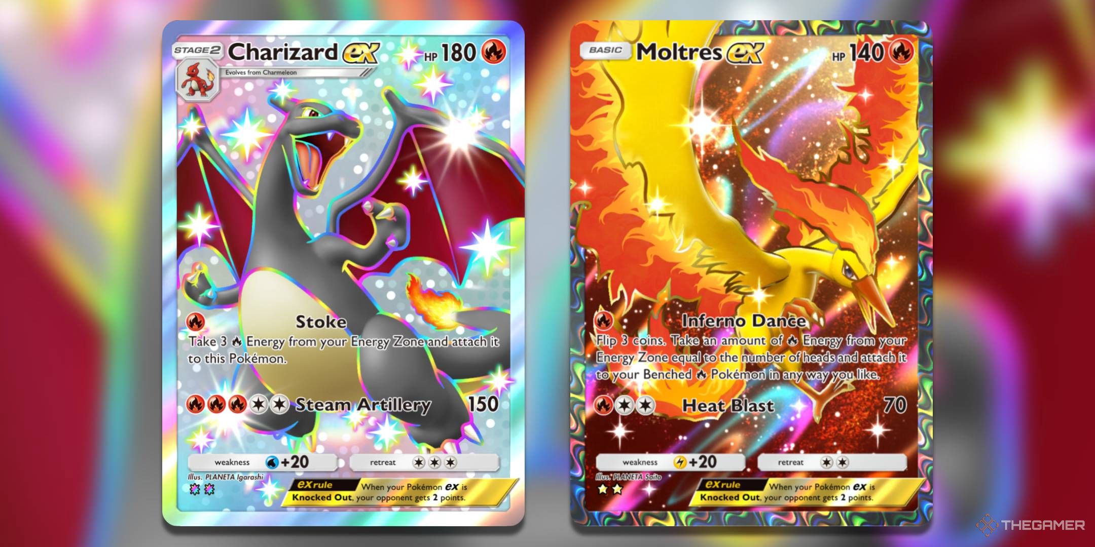 CharizardとそのパートナーであるMoltresが戻ってきて、ひねりを加えています。これはまったく新しいCharizard Exです!輝くレブリーのチャリザードExは、ストークを使用して独自のエネルギーを加速し、エネルギーを捨てることなく蒸気砲で150のダメージを与え、少し少ない(しかし、本当に高い!)ダメージを与えることと引き換えに、遺伝的頂点バージョンよりも一貫性があります。