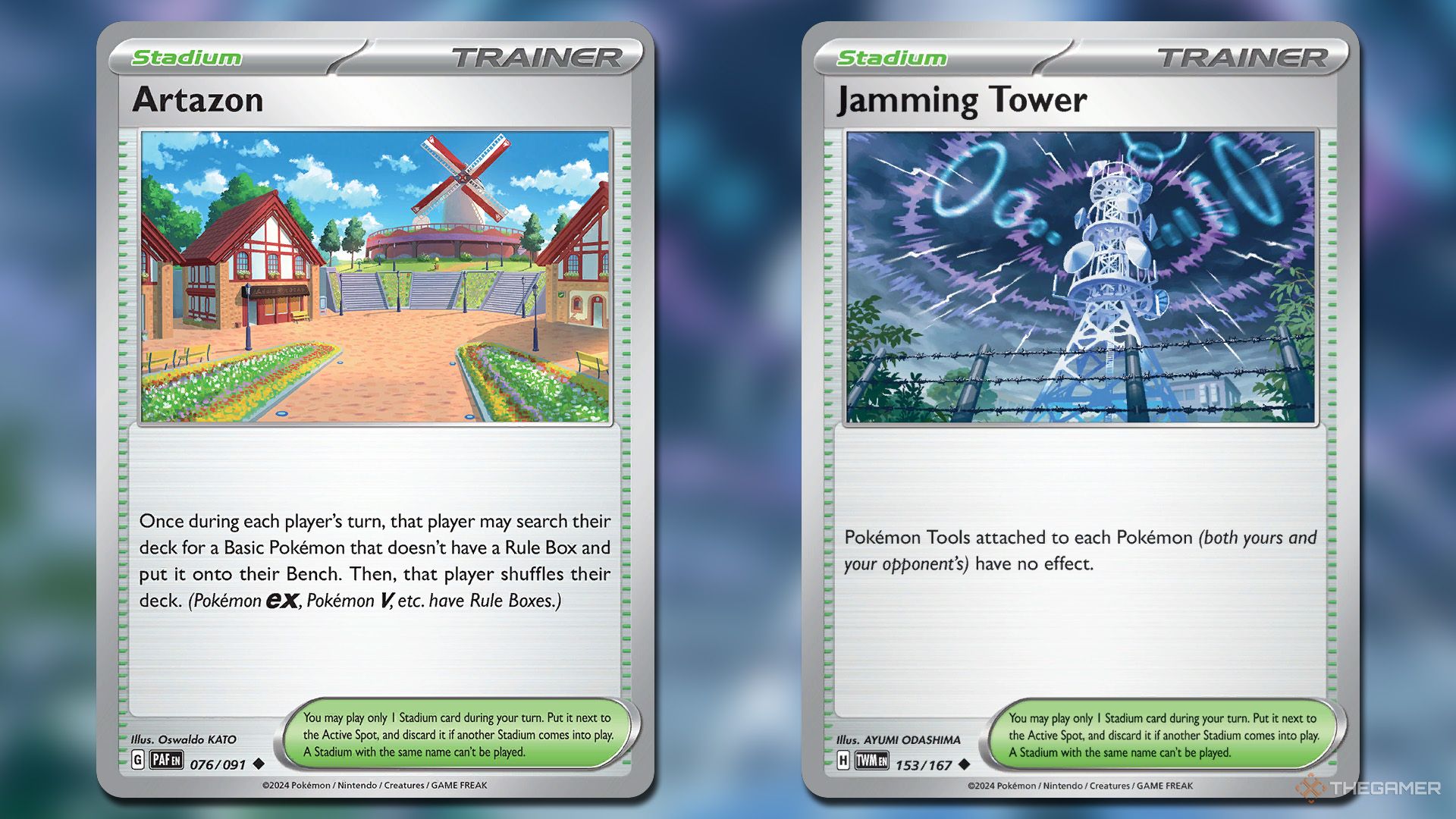 デッキには、2つのスタジアムカードが含まれています:ArtazonとJamming Tower。 Artazonは早期セットアップに最適ですが、理想的にはあなたは最初にジャミングタワーを出したいと思うでしょう。このデッキはツールカードを使用していないため、対戦相手が自分のものを使用できないようにすることで、深刻なエッジが得られます。ジャミングタワーに優先順位を付けますが、早めに引き込むことができない場合、アルタゾンはまだ仕事を成し遂げます。