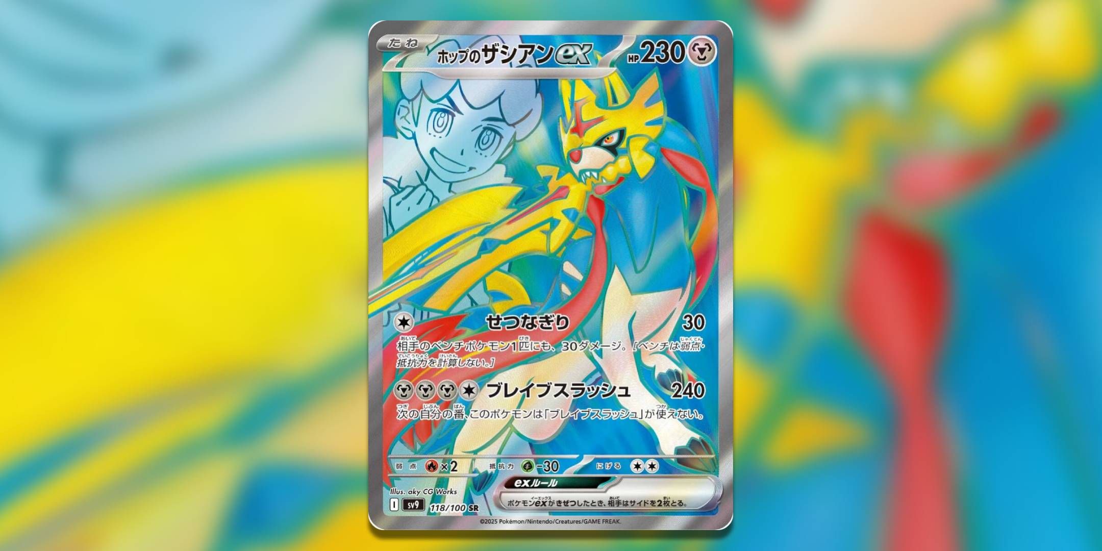 明るい色とアクションは、ホップのZacian Ex Ultra Rare Cardのすべてです。カードから飛び出すザシアンの青、黄色、赤い色。ホップは、彼の青いアウトラインがカードの背景に消えていくにつれてほとんど失われますが、それは大丈夫です、私たちはこのカードでZacianについてです。ホップのザシアンは、彼が偉大な敵と戦うために出発しているように見えます。