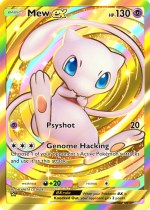 ![]() | MEW EX / PSYCHIC / 130 HP | PSYSHOT(20 DMG) / 1xサイキックタイプのエネルギー ゲノムハッキング:相手のアクティブなポケモン / 3x無色タイプのエネルギーから攻撃をコピーして実行できます |