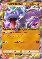 ![]() | Aerodactyl(ex) / stage 1(戦闘) / 140 hp | 土地クラッシュ(80 dmg) / 1xファイティング + 1x無色のエネルギー | Primeval Law:対戦相手は、アクティブなポケモンを進化させるために手からPkémonを演奏することはできません。 |