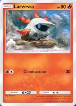 ![]() | Larvesta / Basic(fire) / 80 hp | 燃焼(30 dmg) / 1x無色 + 1倍の火エネルギー | - |