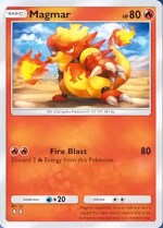![]() | マグマー /ベーシック(火) / 80 hp | 火災爆発(80 dmg) / 2x火エネルギー このポケモンから2つの火エネルギーを捨ててください。 | - |