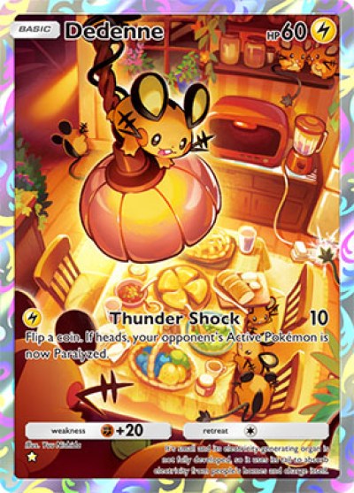 ![]() | Dedenne / Basic(Lightning) / 60 HP | サンダーショック(10 dmg) / 1x稲妻エネルギー コインをひっくり返します。頭の場合、相手のアクティブなポケモンが麻痺しています。 | - |