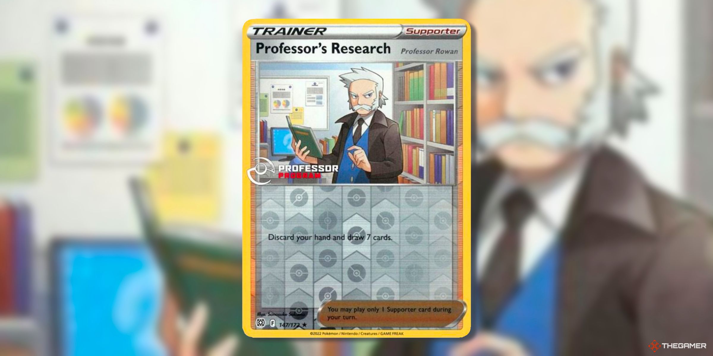 効果のある最初のカードではありませんでしたが、このカードは現在の象徴的な教授の研究の最初のものでした。この名前がこの名前で統一される前に、同じ効果も共有する異なる名前の教授カードがあり、支配の問題により、ポケモン会社が教授カードを印刷したい場合、将来の問題を止めるために教授の研究カードが作成されました。
