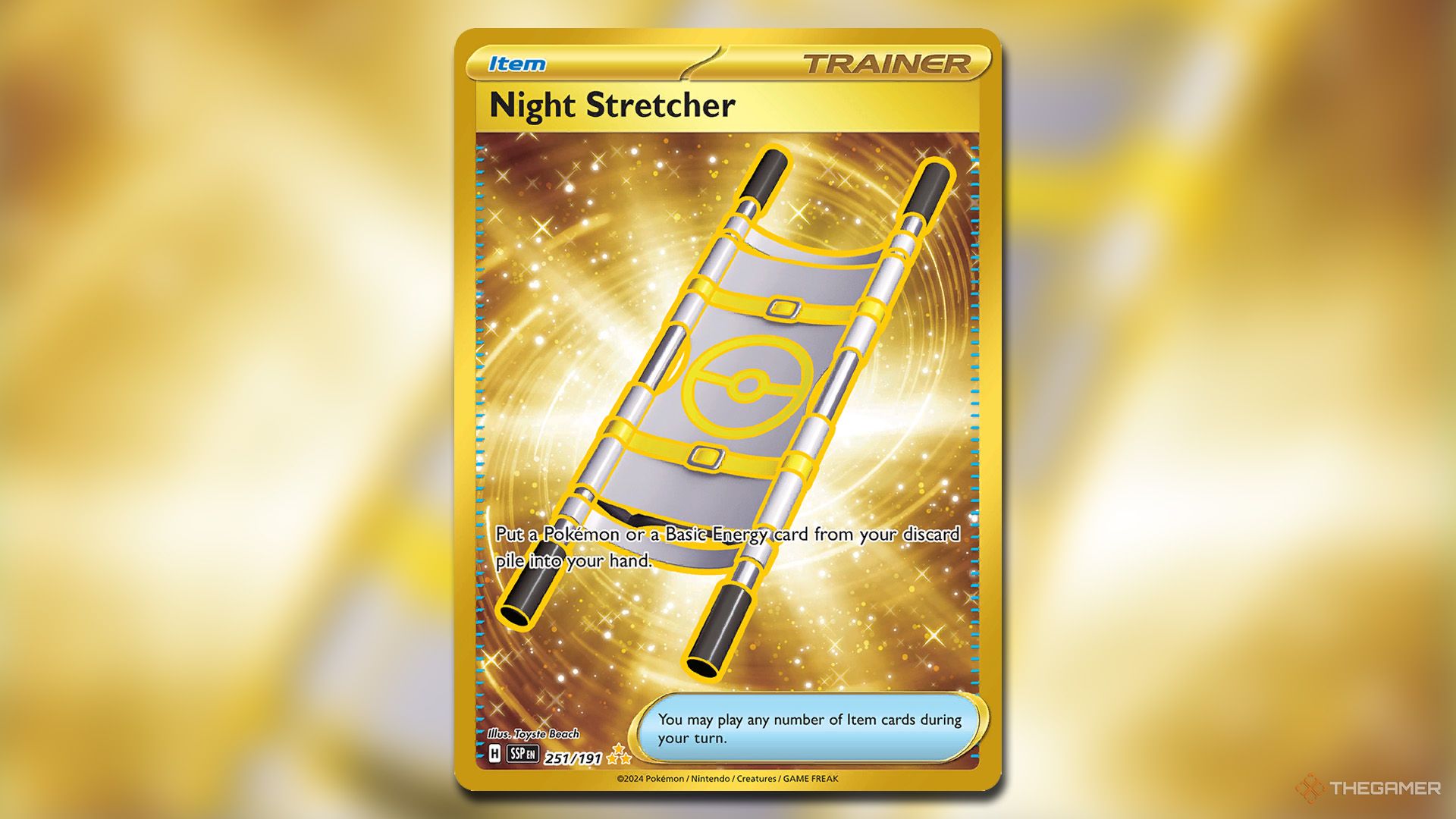 ポケモンカードのみでいっぱいのデッキは、失う運命にあります。それを回避する方法はありません。だから、しっかりした量のトレーナーカードを持つことは必須です!ナイトストレッチャーはこれらの命の恩人の1つであり、廃棄の山からポケモンやエネルギーをつかむことができます。確かに、効果は小さく見えますが、非常に便利です。あなたの最強のポケモンを再生しますか?はい、お願いします!