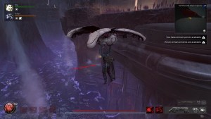 マップに表示されている場合は、そこにファーストトラベルしてまっすぐに向かい、左折します。広い領域の左側にくっつくと、道が上り坂になります。上部には、別のグライダードローンがあります。それを使用すると、下の壊れた橋を見つけます。