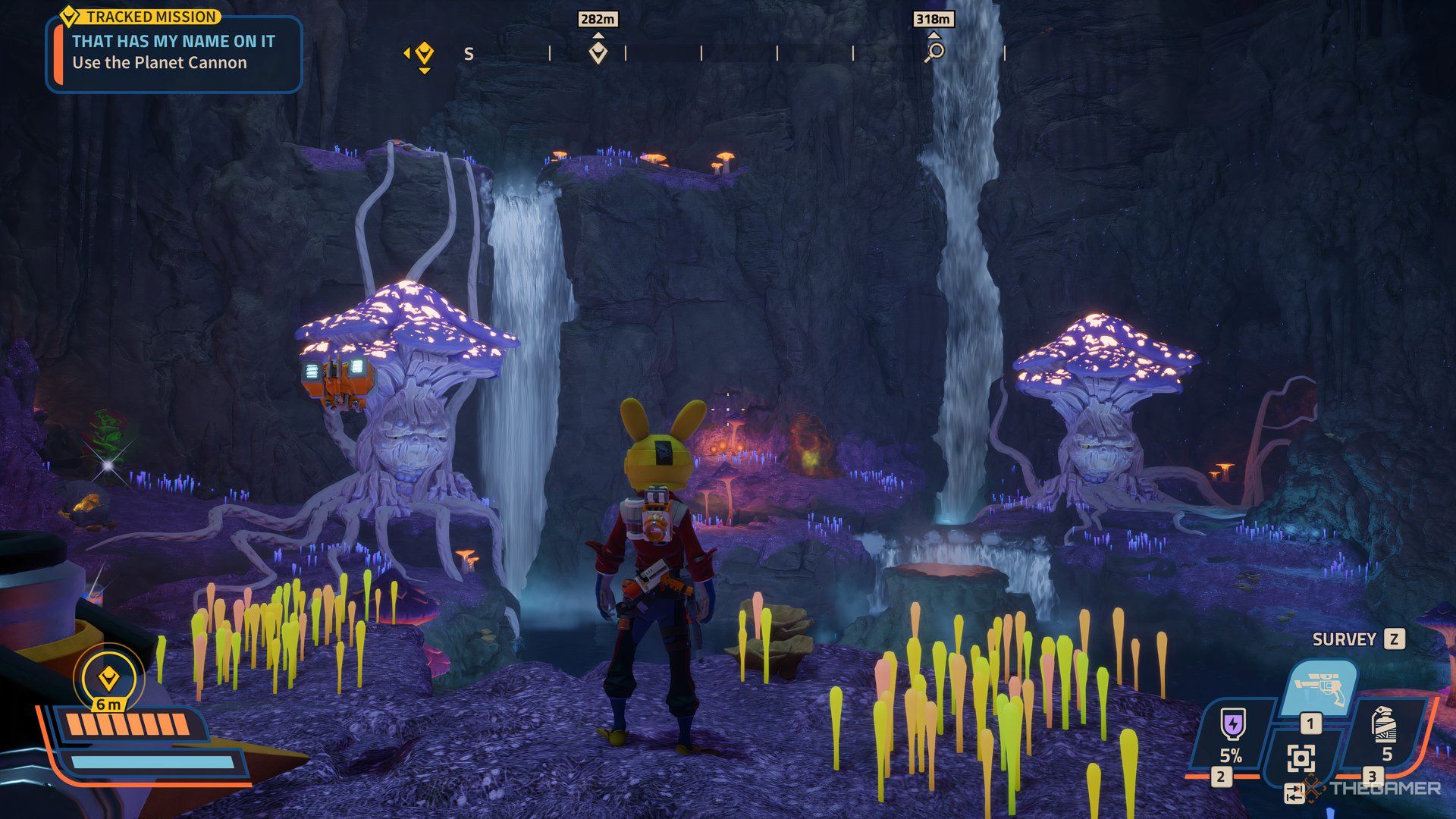 フローティングプラットフォームを取得することで、このスラリーに到達できますメインフローティングロックに向かって。ただし、大きな岩の基部に到達したら、あなたの左を見てください、しかし、あなたが確認してください見下ろす。ロケットにジャンプするためのプラットフォームには、別のスラリーがあります。