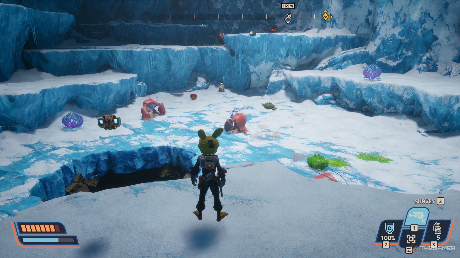 あなたが着陸するとき、爆発する敵の世話をします初め。スラリーは氷で覆われており、溶岩タンクで溶けてしまいます。まだタンクを持っていない場合は、できます爆発する生き物を撃ちます;それらは氷を壊させます。