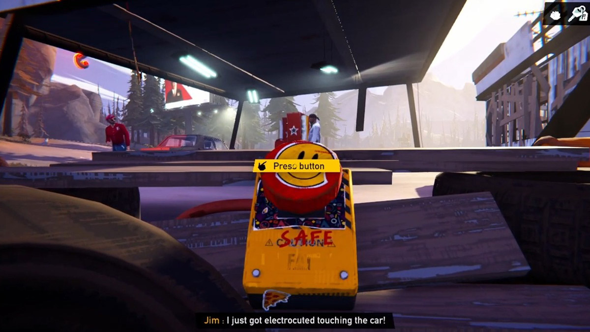 キーで発電機のロックを解除すると、ガソリンスタンドに電力を供給できるようになります。帰りに、燃料ポンプの近くで2人のタイラックサポーターに遭遇します。アレックスは、車の下を走るライブワイヤーを使用して彼らを怖がらせる巧妙な計画を思いつきます。これは、短いが面白いカットシーンにつながります。