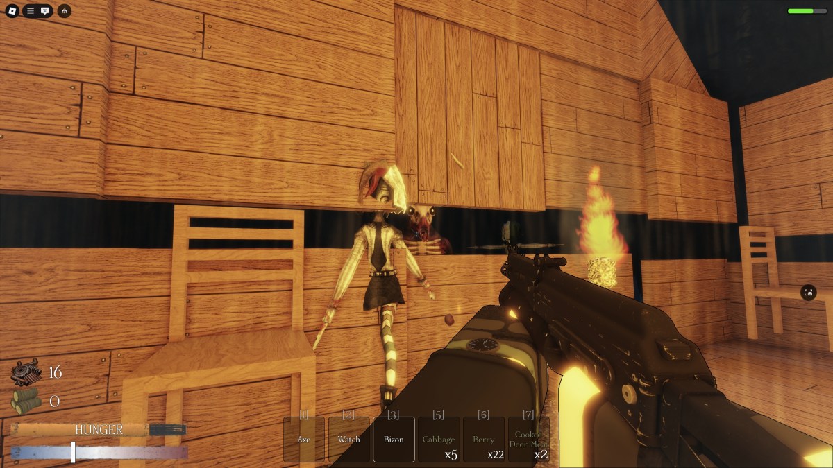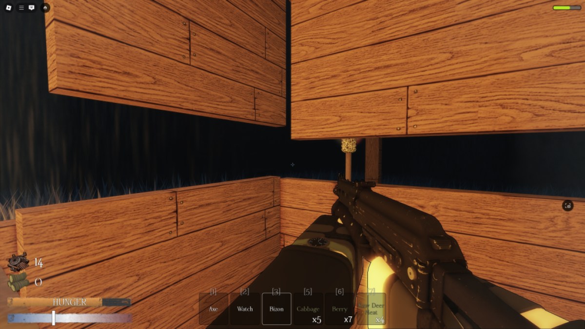 - 1日目:毎日のルーチン、夜:あなたのバリケードを希望する場所の周りにシンプルなフェンス(壁を置くように壁を置くように壁を置く)を始めてから、あなたの家の屋根に向かい、夜を生き延びます