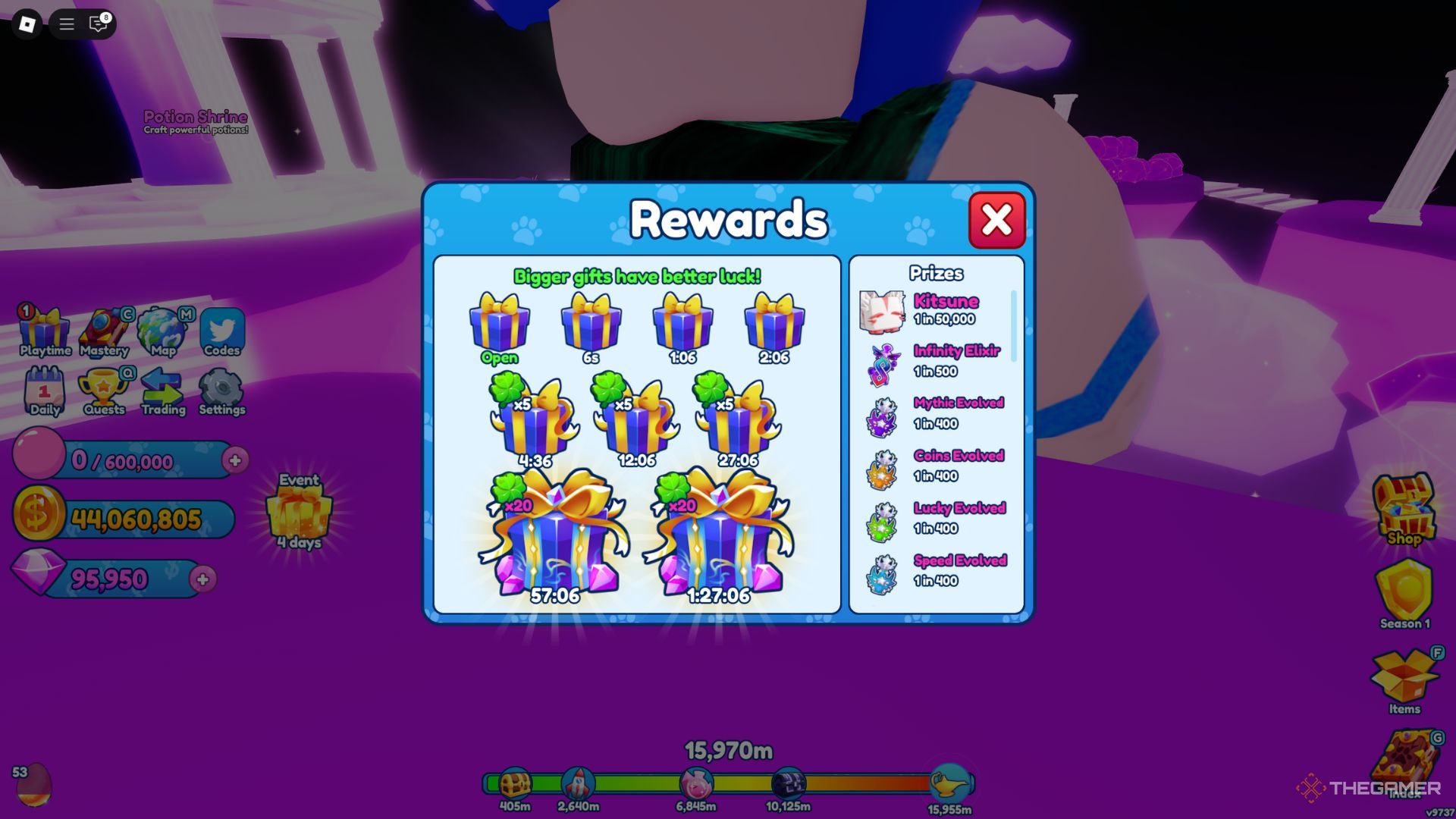 ミステリーボックス自体を収集するのはとても簡単です。それらはドロップされますクエスト、プレイタイムの報酬、日常活動、イベントへの参加、そしてもっと。積極的にプレイするだけで、数十の箱を集め、それぞれがポーションを提供する機会があります。