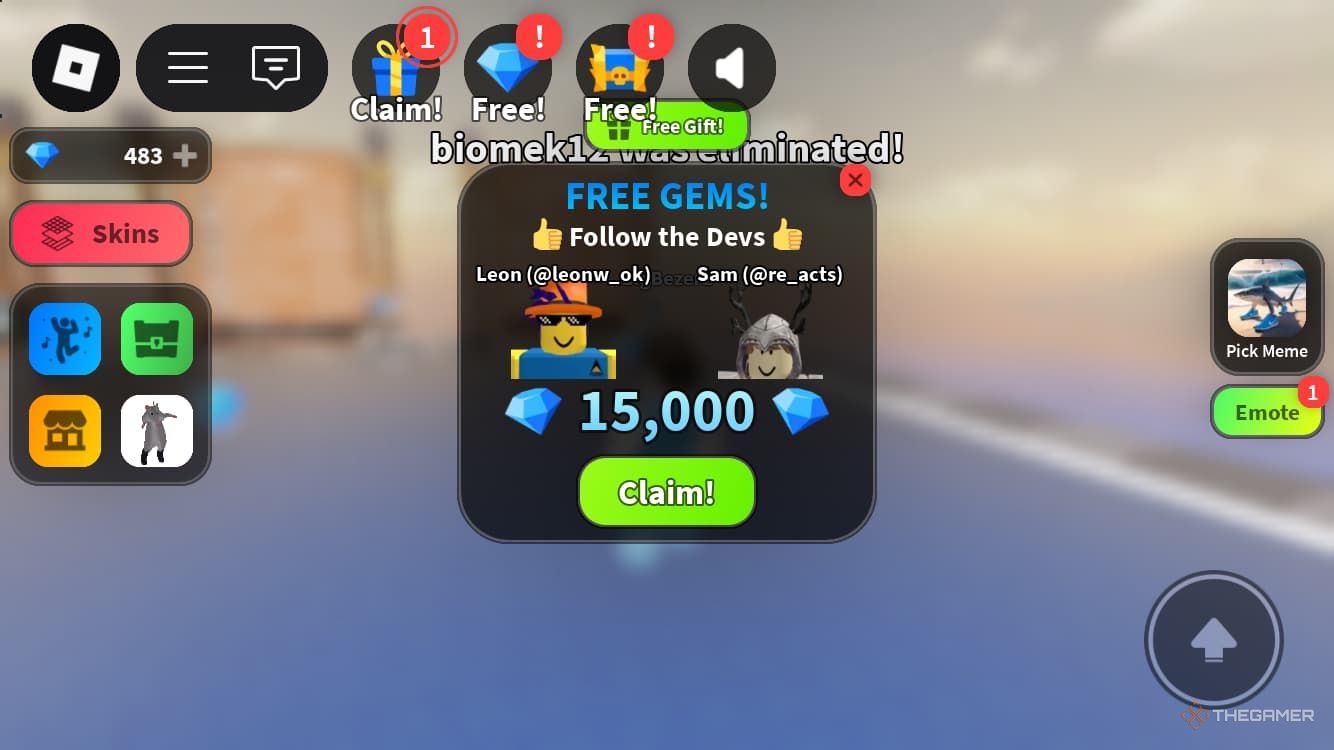 これらの報酬は1時間ごとに更新されるため、ゲームに費やす時間が長ければ長いほど、宝石が増えます。単純に主張するためにギフトボックスアイコンをタップしますRobloxチャットアイコンのすぐ横に。