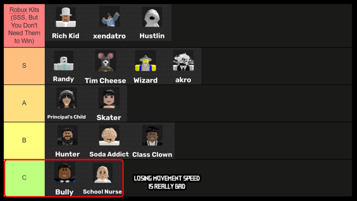 ゲーム中に最終的にすべてのキットからすべてのアイテムを購入できるので、学校の時間で最高のキットは、永続的なボーナスまたはたくさんのコインを提供するものです。永続的なボーナスはすべての日に役立ちますが、1回限りのアイテムは短期的なブーストです。移動速度は健康よりもはるかに優れています統計ブーストとして、それを持つキットが高くランク付けされていることに気付くでしょう。とにかく教師と原則があなたを撃ったので、健康はそれほど価値がありません。また、コイン付きのキットも強力です。これは、ゲームの進行方法に応じて、ショベルホールシステムを早期に確立したり、購入するものに柔軟に対応できるためです。すべてのキットがロビーで何をするかを確認できます。