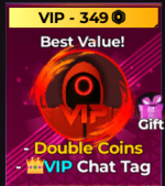 - VIPゲームパス:ゲームパスは一般的に価値がありませんが、VIPのパスは、余分なロブックスがあり、長い間イカゲームXをプレイすることを計画している場合に最適です。すべてのゲームモードと役割のすべてのソースからのコインゲインを2倍にします。