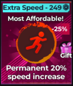 ![]() 余分な速度 | •歩行と疾走速に20%増加する | •それが安い端にある間、増加は非常に弱いです •スプリントブーストを最大にしている場合、これは本当に必要ありません |