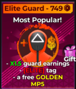 ![]() エリートガード | •ガードとしてのすべてのソースからの50%多くのコイン •エリートタグ •ゴールデンMP5スキン | •Perma Guard Bundleを持っていない限り、常にガードをプレイしているときにしか恩恵を受けることができるものには高すぎるもの |