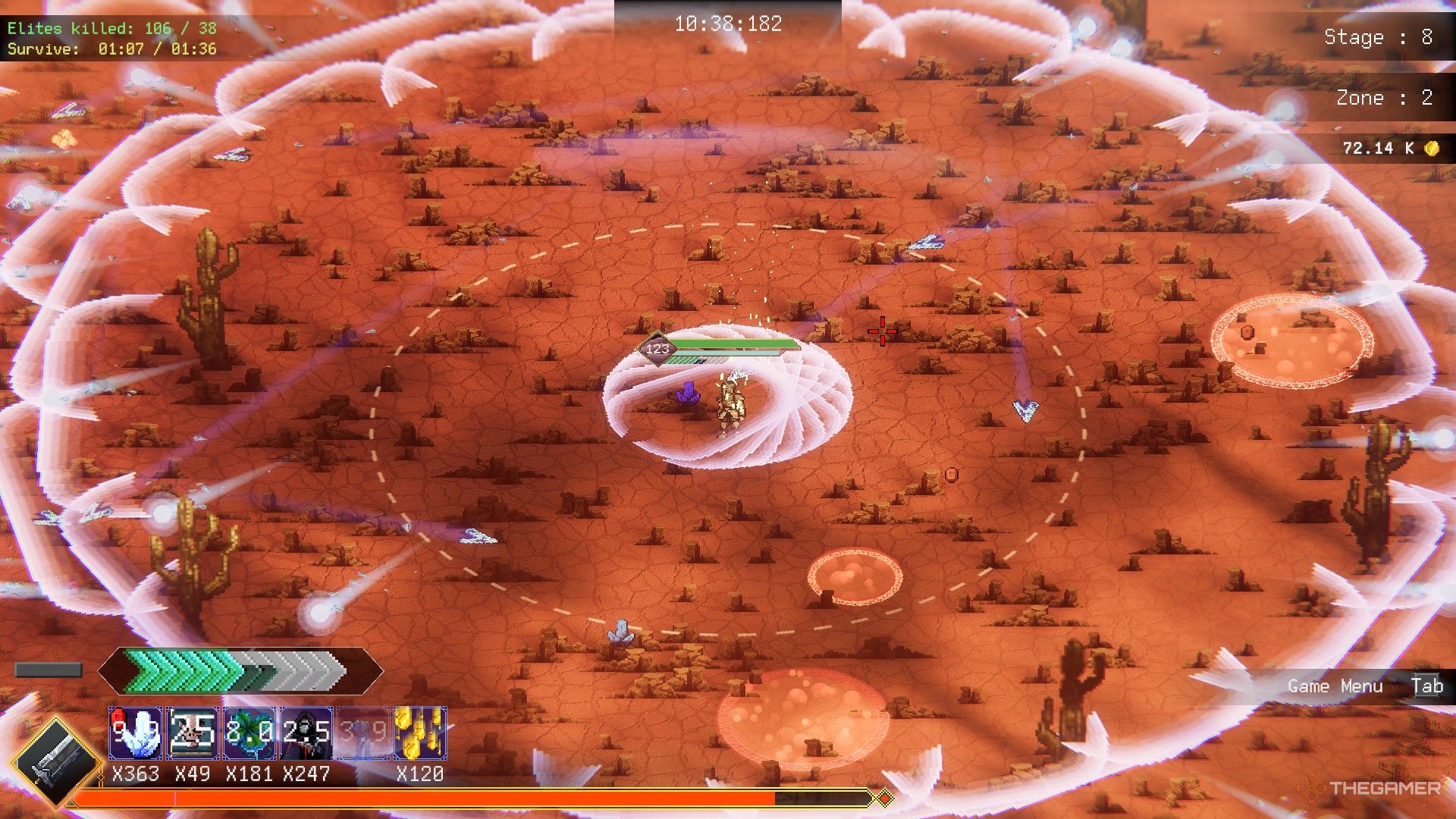 爆発的なバイアル | 波が透けています | エリアのアップグレードにより、爆発半径が改善されます。 | バイアルは、他の武器に応じて3つの異なる方向に進化し、多用途になります。ゲーム後半では、そのダメージが遅れ始め、継続的な爆発の視覚的な混乱は、自分自身を守るのを難しくすることができます。 提案された読み:Rogue:Genesiaの武器を進化させる方法 |