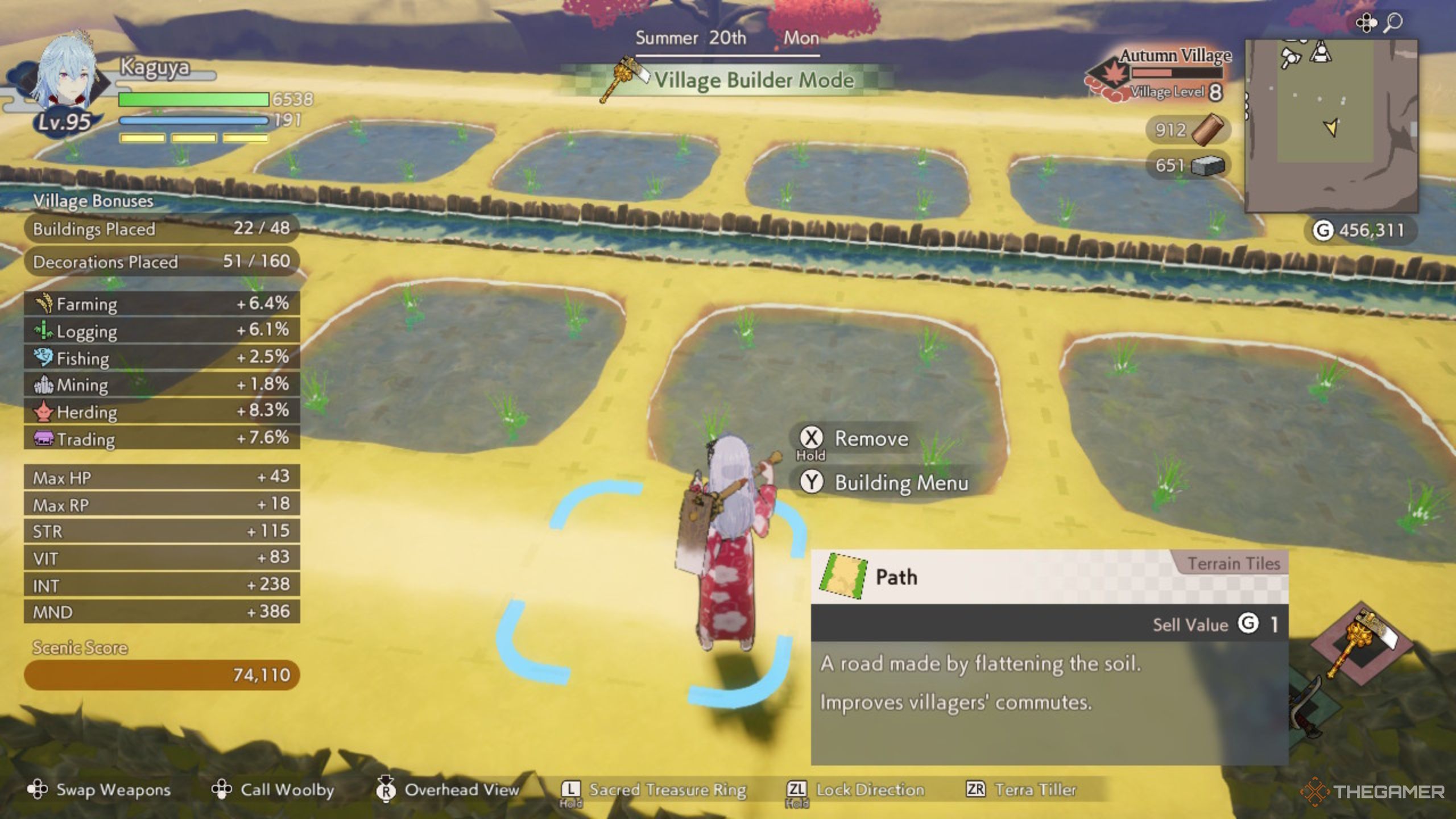 村に着いたら、隣接するタイルに水路が付いた米の水田を置くことができます、水田の中の水を満たします。その後、ここに米の種を簡単に植えることができ、成長したら収穫することができます。秋の村自体に植えれば、これらから米の最高の生産量が得られます。