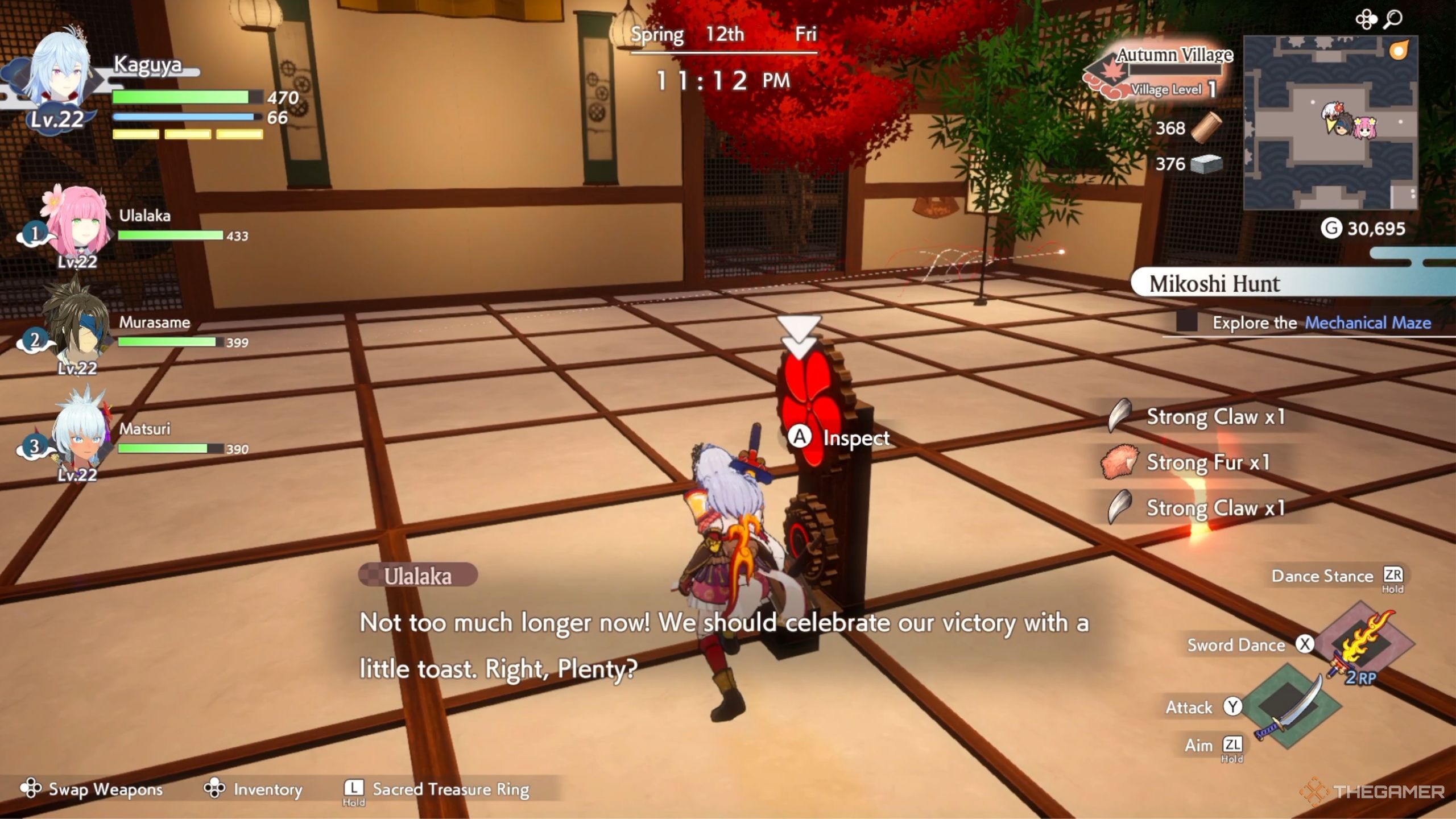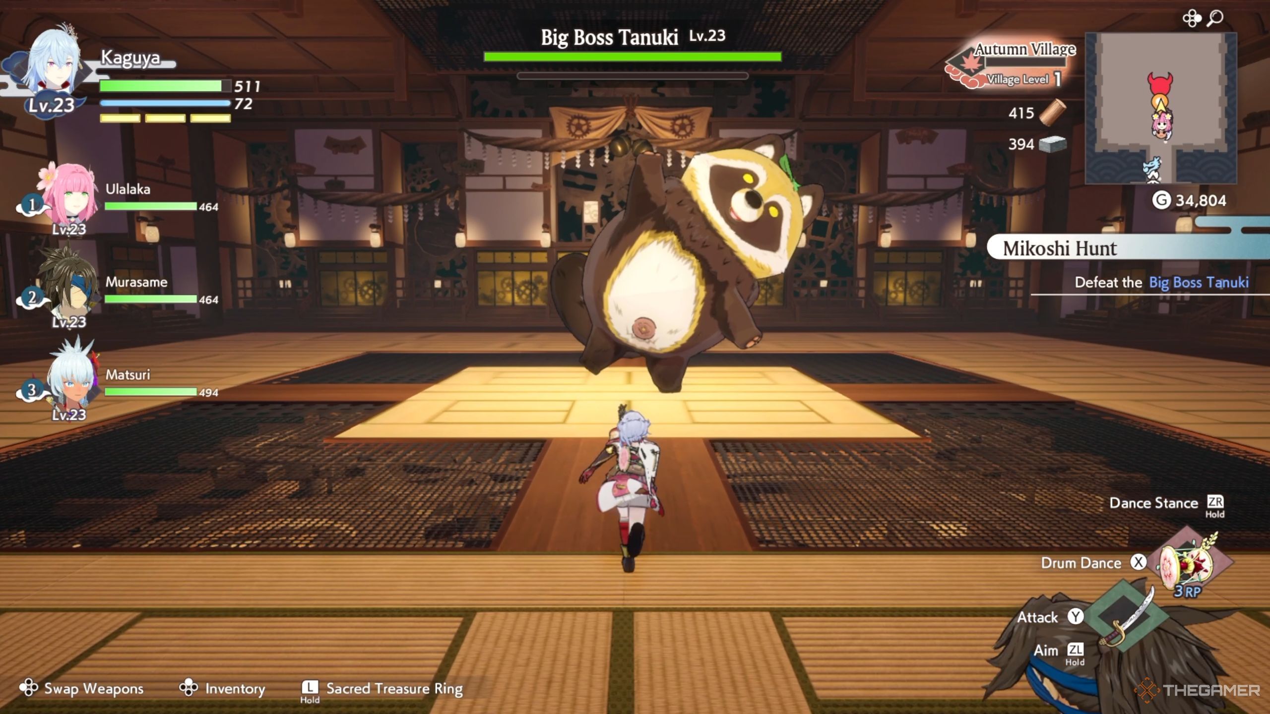 機械式の迷路の最後の部屋に入ると、ビッグボスのタヌキは小さなカットシーンの後に出現します。このボスにはデュアルブレードと風の要素がその弱点としてあるので、神聖なファンを持っている間、自分に適切な武器を作ることをお勧めします戦いの前に装備。あなたのレベルはここで上司に似ているので、あなたはあなたのダメージをバフするためにいくつかの食べ物を食べることができます。