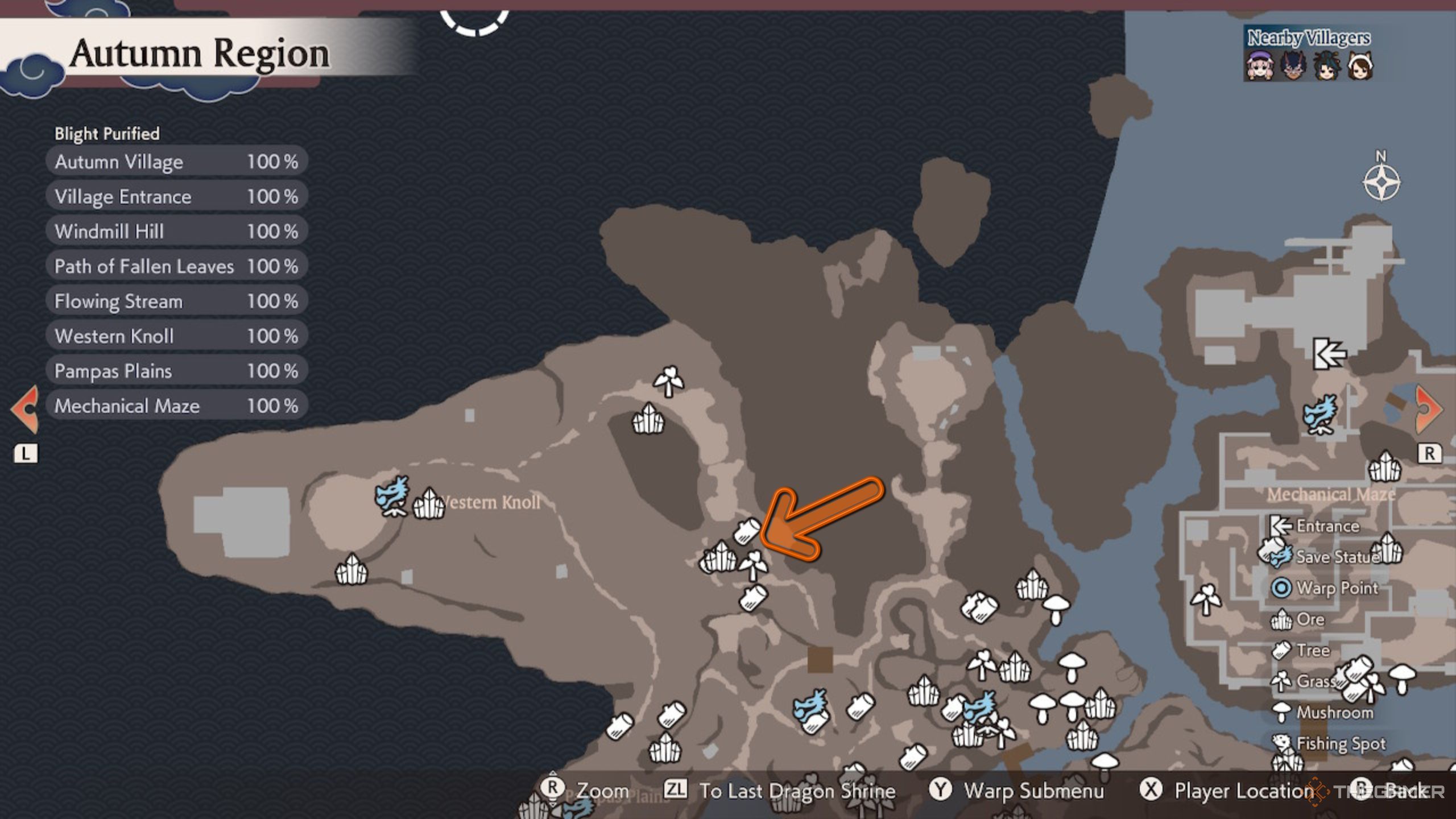 これらのスポットを順番に行う必要はありませんが、訪問する村の年表によると、技術的には3番目のスポットです。これは秋の村の郊外で見つけることができますが、メインストーリーに従うと到達するにはかなり時間がかかります。あなたは最初に機械的な迷路を通過し、もう少し対話をしなければなりません、そしてその後、マーカーは秋の地域の北西の端に更新されます。