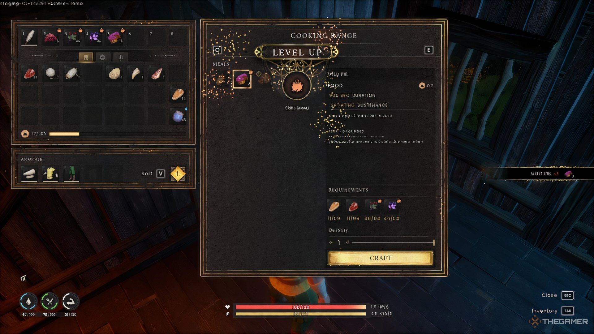 たとえば、レッドベリーを拾ってキャンプファイヤーとやり取りすることで、乾燥したレッドベリーのロックを解除しながら、調理範囲と対話することにより、ミートピザのレシピのロックを解除できます。ほとんどの食品タイプはキャンプファイヤーで調理することができますが、一部は皿に使用してバフを与えることができます。