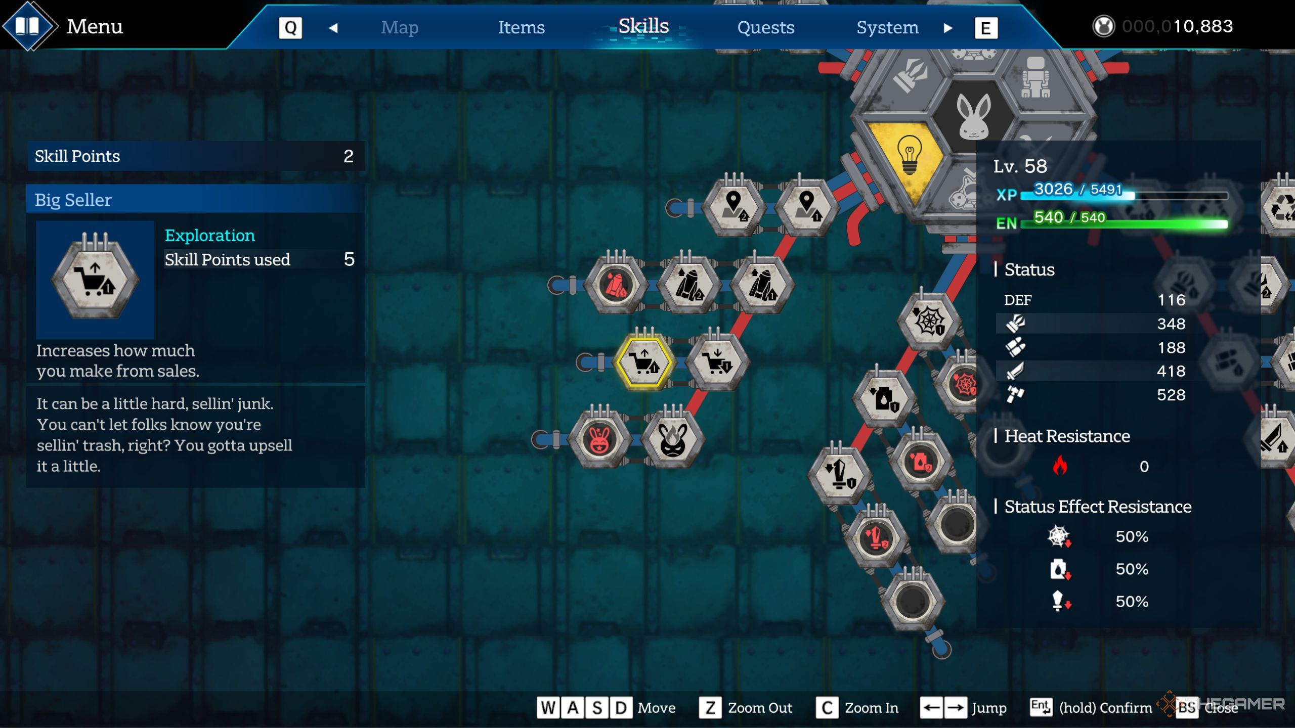 スマートな買い物客と大売り手のアップグレードがありますスキルツリーの左下の3列。前者はショップのアイテムの価格を引き下げ、後者はあなたがあなたのアイテムをどれだけ販売するかを増やします。これは、初期のゲームに参加するための最も重要なアップグレードの1つです。
