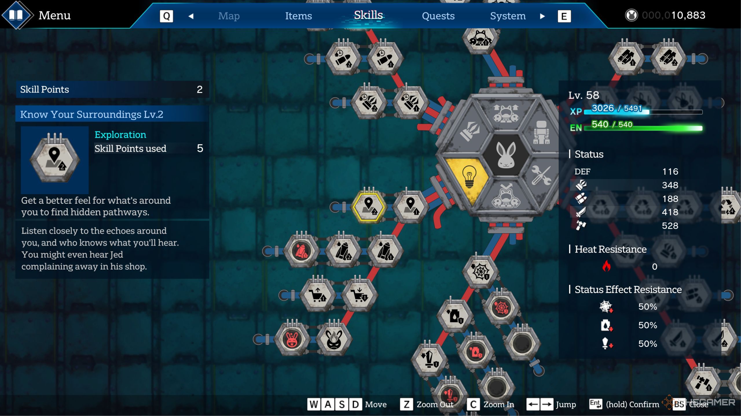 Rusty Rabbitのメインストーリーを進めるにつれて、メインメニューのスキルセクションをすばやくロック解除して、スキルポイントを投資してSmokestack Mountainの内外でさまざまなブーストを得ることができます。これらのスキルは、バフに基づいて6つのセクションに分かれています。