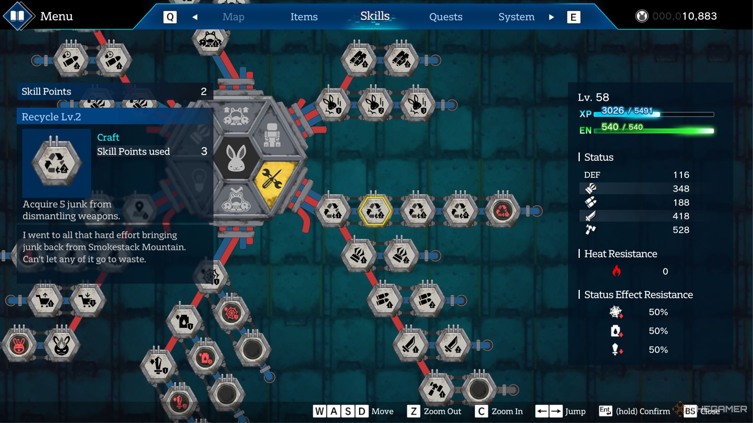 スキルツリーの右下の部分では、あなたはネジ型ツールアイコンの横にあるリサイクルアップグレードの長いブランチを見つける真ん中に。武器のクラフトはさびたウサギの重要な部分ですが、それを作成するたびに特定の武器スキルを役割を果たすことができる運に基づいたシステムもあります。