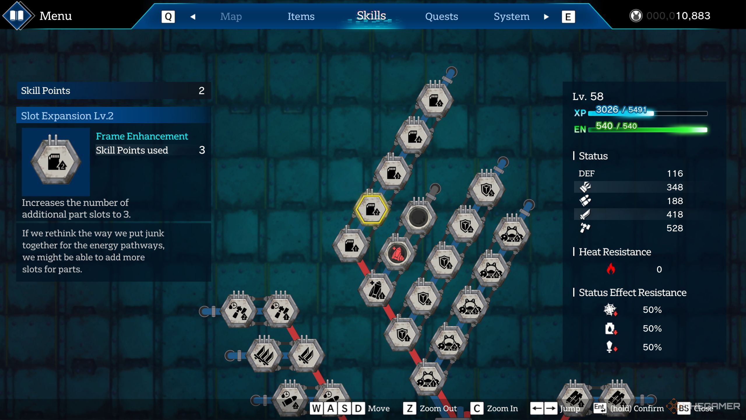 ゲームのステータス効果は、デフォルトではかなり長い間続き、それらを下げることが重要です。それを行う方法の1つは、スロット拡張のアップグレードのロックを解除することです。これにより、追加のパーツのスロットが増え、そこにさらにチップを配置できるようになります。
