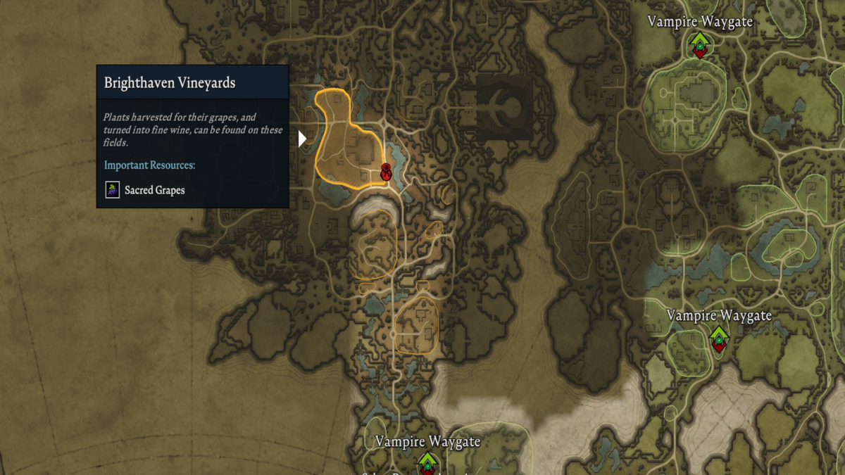 あなたはvで聖なるブドウを手に入れることができますBrighthaven Vineyardsシルバーライトヒルズ地域では、それらを収穫したり、ゆっくりとしたりして。ただし、この地域は、神聖なブドウと人間がブドウ園をパトロールし始めた後に着陸する高レベルのハーピーに守られているため、注意してください。運が良ければ、神聖なブドウのつるは神聖なブドウの種を落とします。これは、城で成長するプロットに植えることができます。神聖なブドウと神聖なブドウの種の両方はテレポート可能ですので、農業を耕した後、吸血鬼のウェイゲートを使用して基地に戻すようにしてください。
