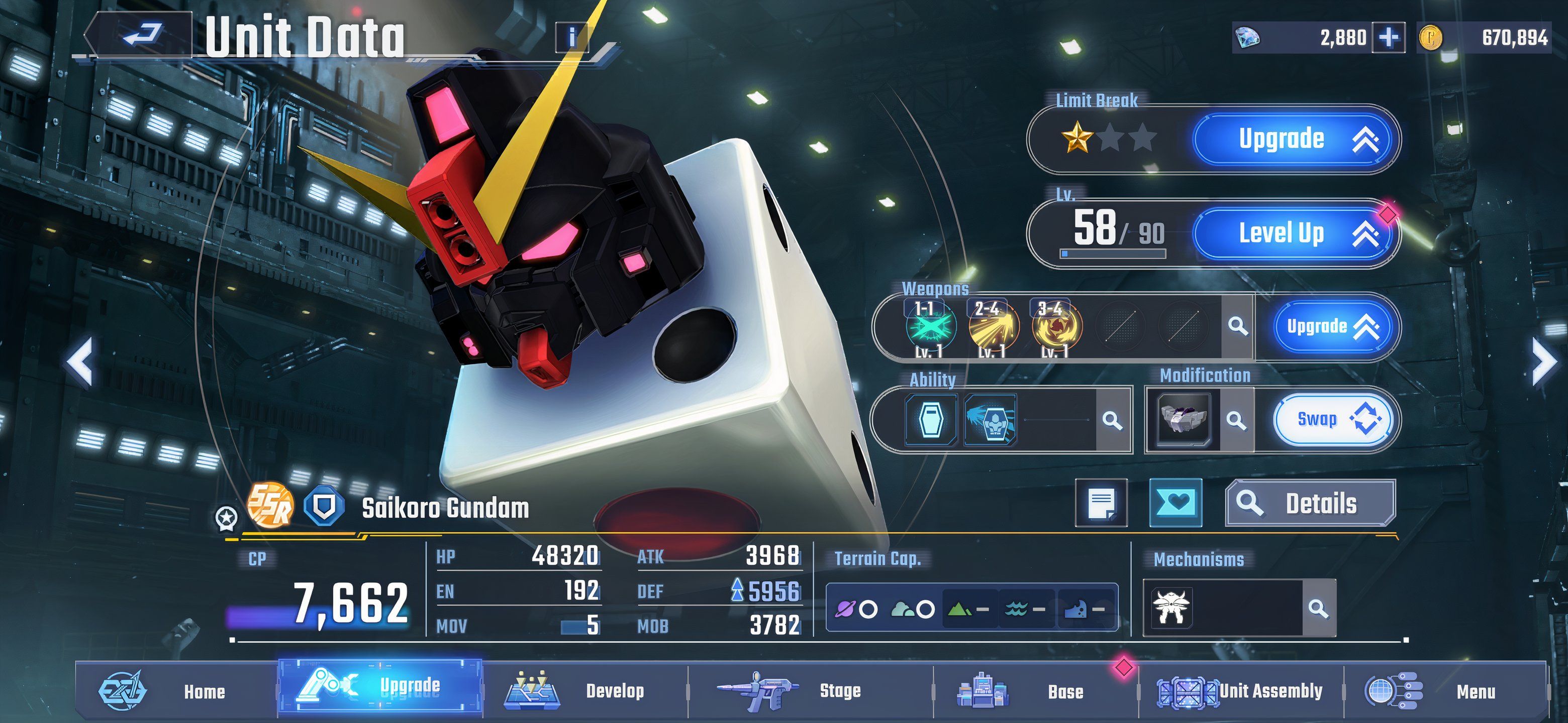 ゲームのチュートリアルを実行した後、最終的にいくつかのオプションと、モバイルゲームを初めて開くことに伴うすべてのトラップが得られます。私がプレイしたのは、必ずしも気まぐれではあるが、グリッドの周りに各モバイルスーツのキビバージョンを移動する魅力的な戦術RPGです。爆発、ロングカットシーン、たくさんのファンサービスがあります。