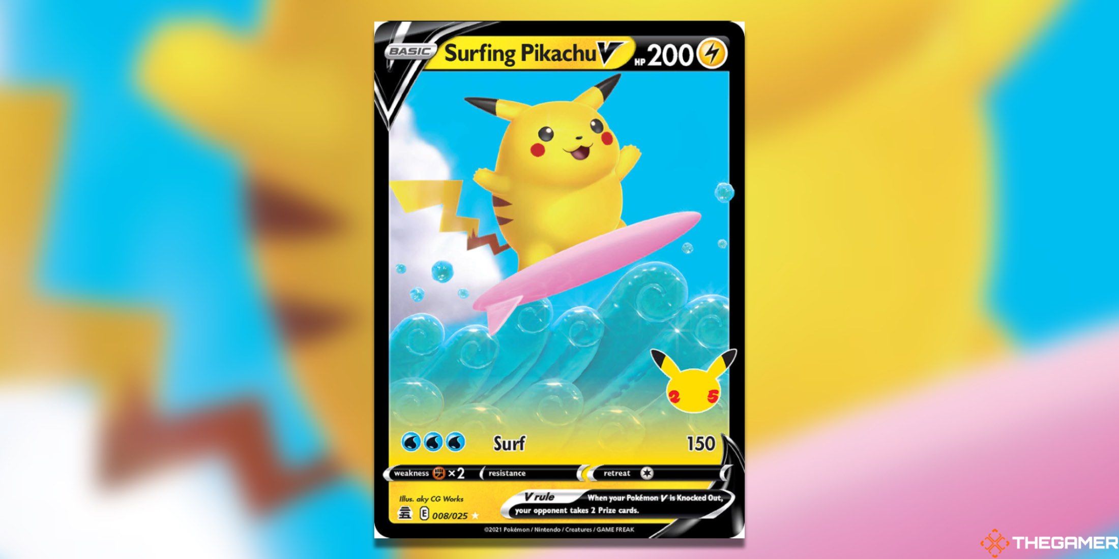 あなたがそれほど安くなるとは思わない衝撃的に手頃な価格のカードといえば、このサーフィンピカチュVは、ここで最も認識できるアートワークとして際立っています。残念ながら、このバージョンはCelebrationsからの歓迎です。これは、最も有名なポケモンTCGカードのいくつかのアートワークを再版したセットです。