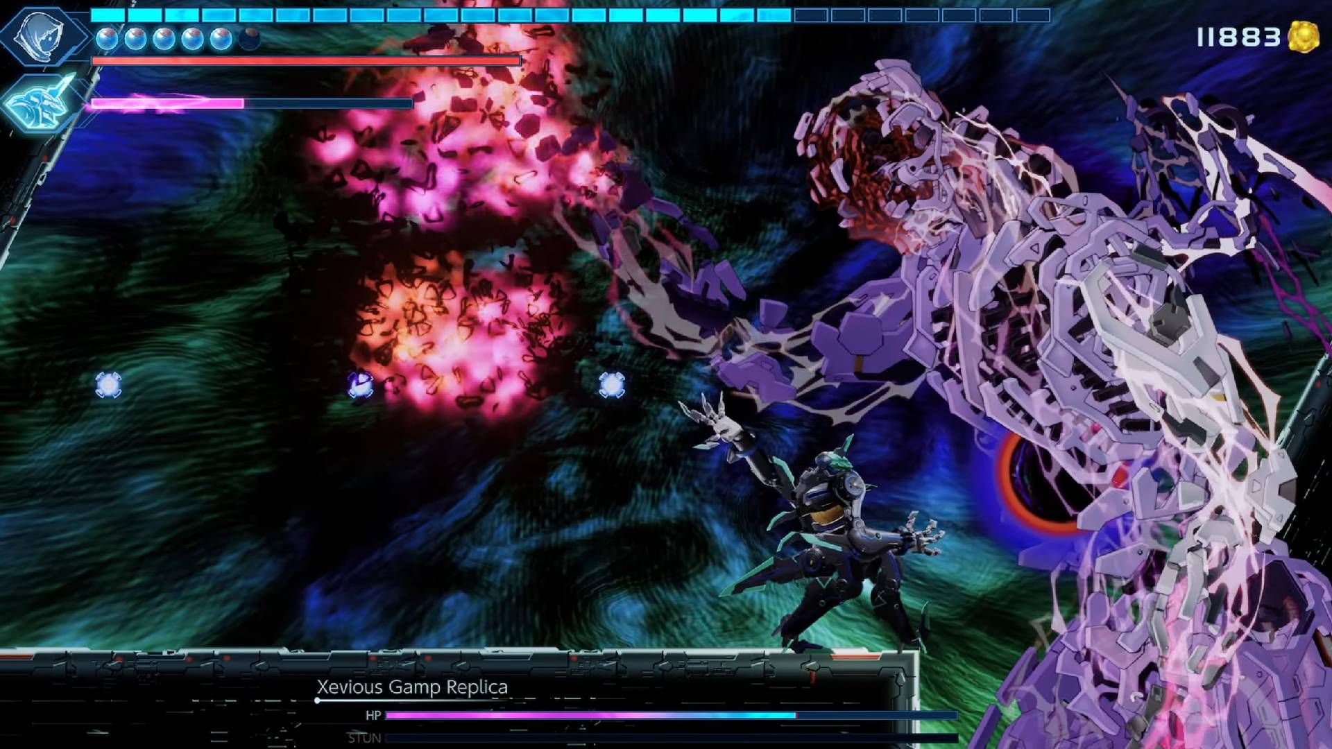 4つの寄生虫を倒した後、ついにRogue AIであり、Shadow Labyrinthの主な悪役であるGandを引き受ける時が来ました。最終的なボスに期待されるように、これはチェックポイントなしの多段階の戦いです。全体に勝てない場合は、最初から再起動する必要があります。
