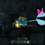この時点で、洞窟を離れてOfrycに戻ることができます。しかし、それは楽しいことではないでしょうか?神のない死刑執行人の部屋を出ると、右への洞窟の道があり、それを登ることができ、そのBマーカーに向かい、エディランを見つけることができます。上部では、地面に輝く紫色の亀裂と、反対側でしゃがむことができる隙間があることに気付くでしょう。そのギャップを通り抜けてから、道をたどり、洞窟の床のより大きな穴を通り抜けます。