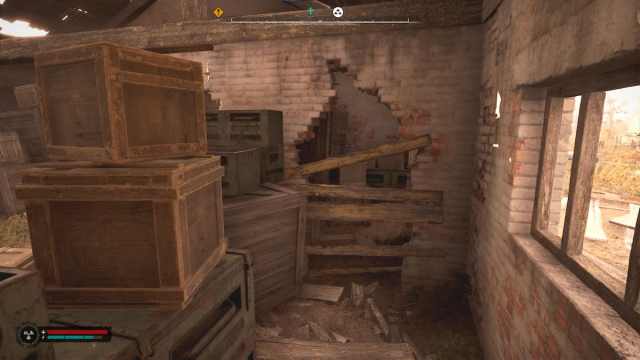 盗賊と一緒に仕事をすることを選択した場合、彼らが前に立っている豚の建物の中に向かい、その地域を探索することができます。キャッシュを見つけることができる場所は、左側の左側にあります。部屋があるかどうかに応じて、いくつかの木製の箱でブロックされます。そこから、木製の板で部分的にブロックされた後ろの部屋を探してください。そうすれば、ナイフや迅速な近接攻撃を使用してそれらを壊すことができます。