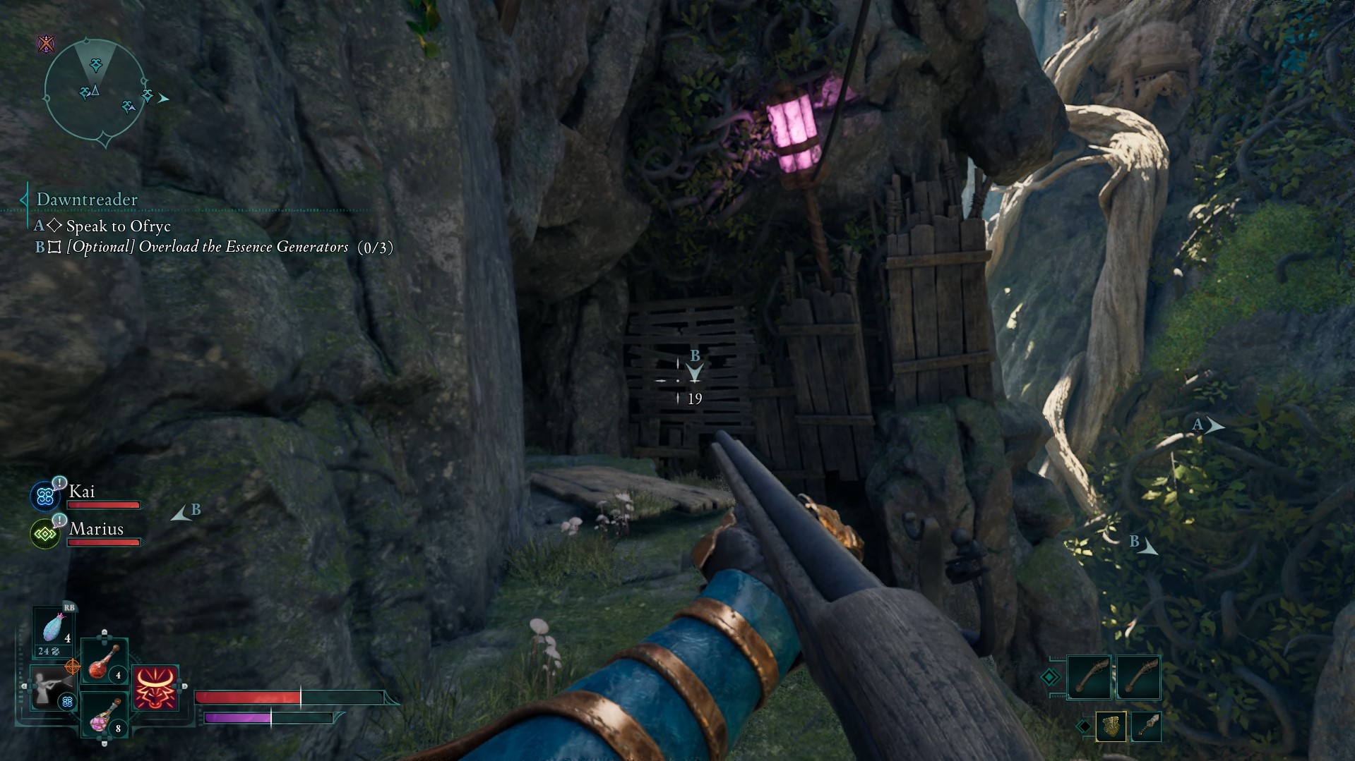 最後のエッセンスジェネレーターについては、彫像に遺物を置き、木製の搭乗を右側にたどり、ギャップを飛び越えて180ターンを行うのに使用したはしごに登ります。あなたの右の棚にジャンプして、彫像の頭の後ろにあなたを連れて行きます。