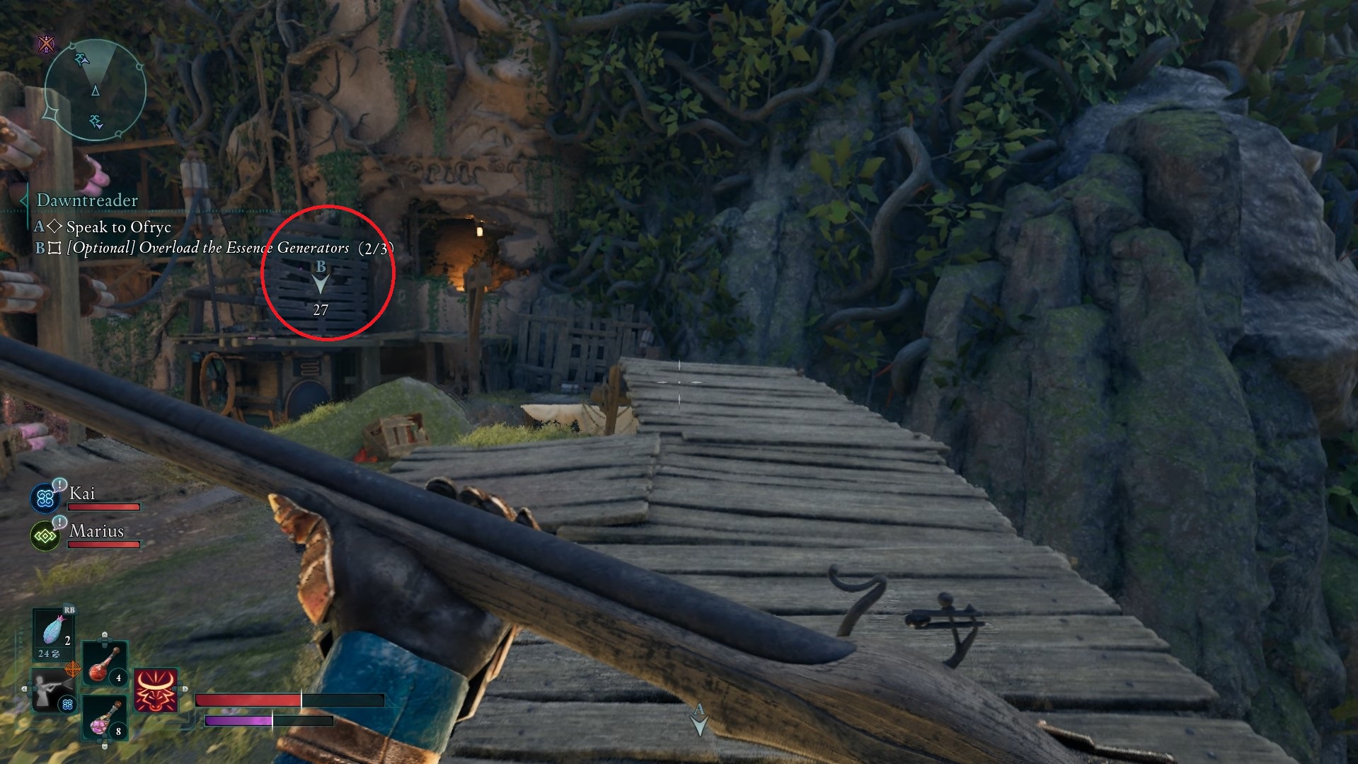 2番目には、彫像の左側に向かい、木製計画を横切って向かいます。ギャップの反対側の壁にさらに木製の搭乗があります。遠隔武器を使用して搭乗を破壊し、ジェネレーターをザップします。