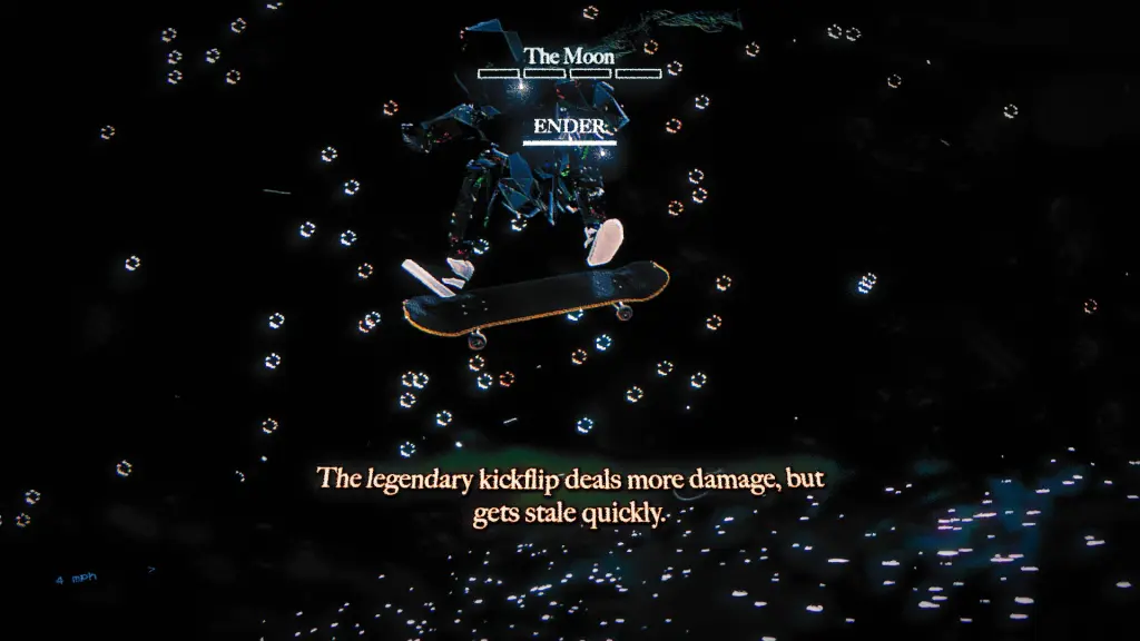 ゲームプレイの中心となるループは、アンダーワールドのさまざまな層をスケートで移動し、さまざまなタスクを完了し、月を飲み込めるまで自分自身を強化することです。学んでマスターすべきトリックがたくさんあり、それが敵にダメージを与える方法なので、マスターしたいと思うでしょう。トリックが複雑であればあるほど、与えるダメージも大きくなります。