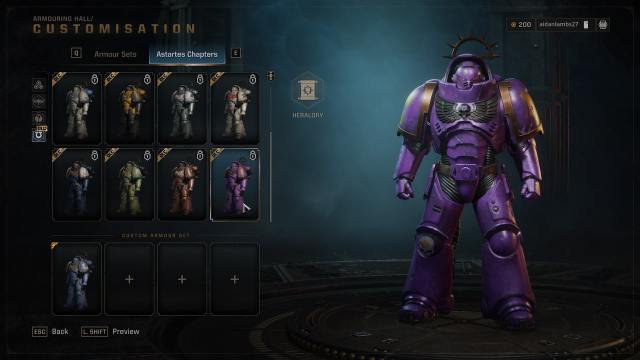 ウルトラマリンの後継者の章の品揃えはDLCの後ろにロックされており、他のすべてのアーマーセットとデカールはゲーム内通貨で個別に購入する必要があります(運用で耕作し、マルチプレイヤーゲームから勝ち取ることができます。心配しないでください)。ただし、クラス固有のアーマーセットは、目標を通じて獲得する必要があります。