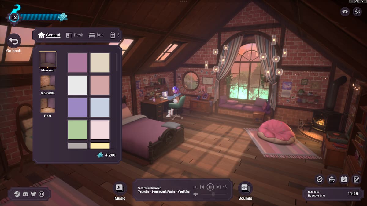 また、背景を変える機会もあります。これはあなたの仮想寝室です。家具をカスタマイズし、さまざまな装飾を配置し、スペースを自分の好きなように見せることができます。服のように、スピリットコインを獲得することで、より多くのオプションのロックを解除できます。さらに、照明を変更して、部屋が変身するのを確認します。夕日の黄金色の光や月の明るい輝きの輝きに設定します。