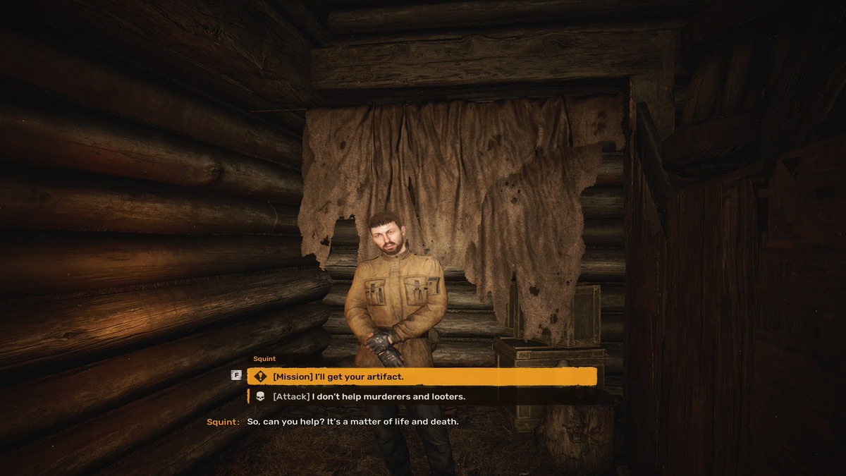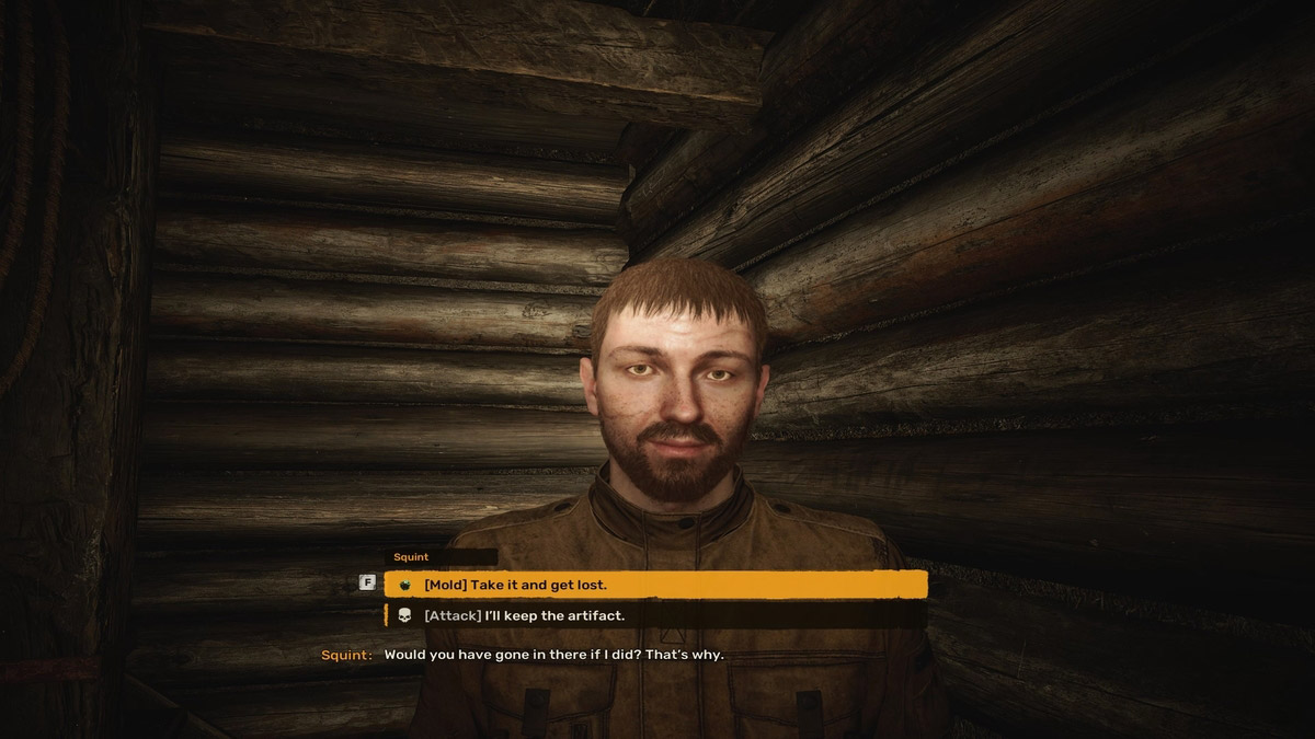 アーティファクトを策略に戻すと、別の決定に直面します。「金型」アーティファクトを渡して目を細めたり殺したりして、アーティファクトとワードセンサーの両方を維持します。執筆時点で、ストーカー2でシッティングを殺すことの結果は不明だったので、私たちは彼をspareしませることを選択しました。