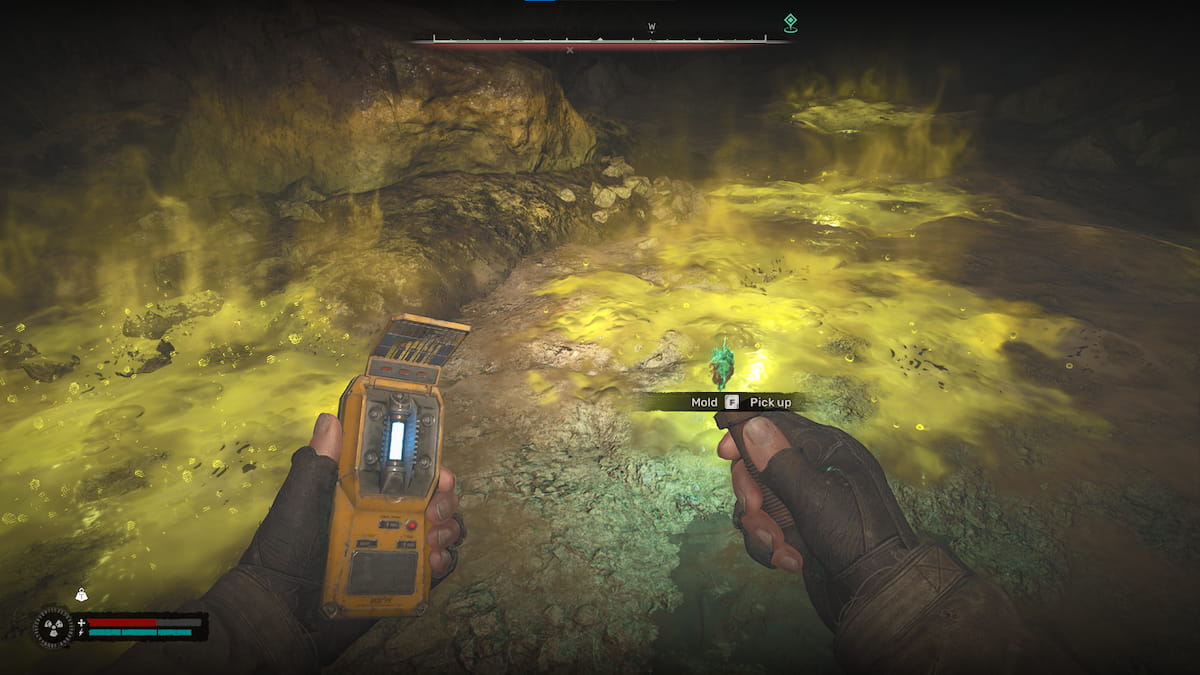 トンネルの端に着くと、有毒な山とガスでいっぱいの大きな洞窟があります。する必要があります検出器を使用してから、ボルトを使用してアーティファクトを明らかにします、アーティファクトが明らかになるまで、中央の酸の山にボルトを投げます。それを見ることができたら、金型アーティファクトを回復し、目を細めて戻すことができます。残りの道を洞窟に追いかけ、安全に彼に戻ってください。