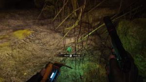 洞窟内の道をたどると、地面に酸の水たまりがあるオープンエリアに導かれます。あなたを取り出しますエコースキャナーアーティファクトを検出します。水たまりの中に入り、検出器のビープ音を聞いて、より速くなります。ビープ音が積極的になればなるほど、アーティファクトに近づきます。