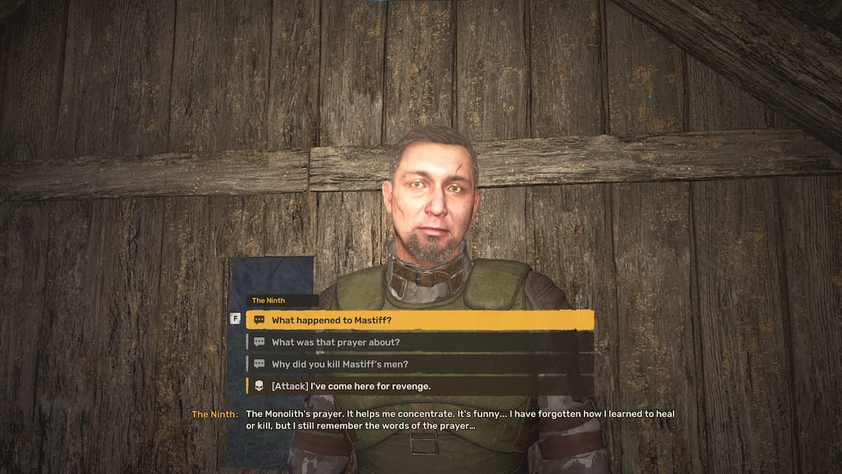 ただし、9回目と話をした後、前庭で叫ぶのが聞こえます。土曜日はマスティフを追いかけて彼を救うように言ったが、彼はまた他のストーカーに9番目を見つけて彼を排除する場所に語った。あなたは今持っています9番目に味方するか、彼を死なせるかストーカー2で。