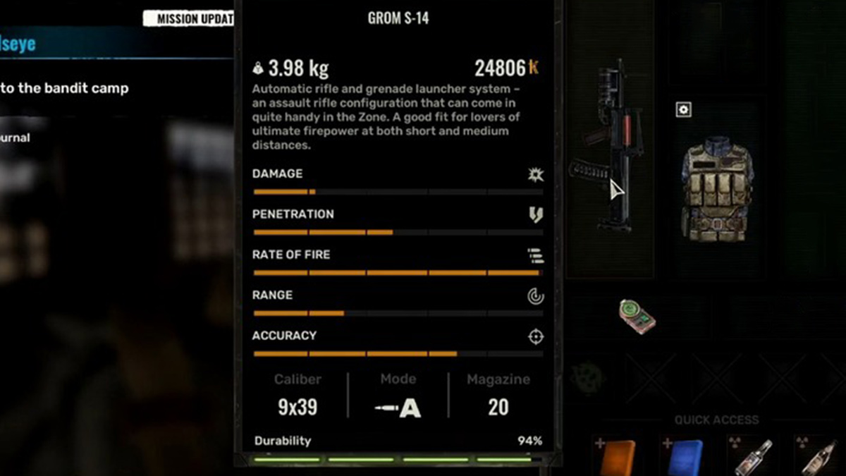 とはいえ、それでもGrom S-14を取得したい場合は、購入する代わりに無料で入手することをお勧めします。これを行うには、化学プラント地域の「Vadyk Firecracker」サイドミッションを完了します。 Bloodsucker Village PoiにVadykがあり、そこで彼はあなたに擬似巨人を狩ることを課します。あなたがミッションを正常に完了すると、彼は無料でGromS-14であなたに報酬を与えます。