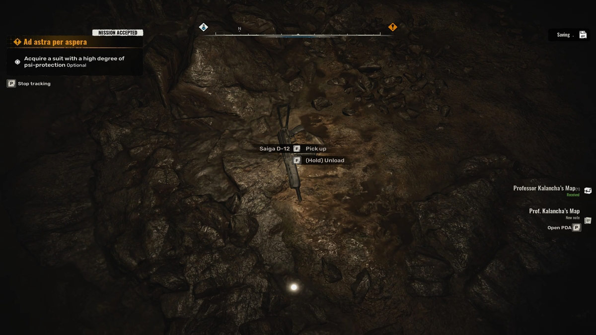 Saiga D-12を取得する最も早い機会は、ザトン地域の「ガイドを探して」ミッション中です。このミッションでは、以前はファウストを支援していたNPCガイドであるNimbleが、Saiga D-12をカットシーンに落としました。その後、銃を拾うことができますが、耐久性が低く、使用前に修理が必要になることに注意してください。